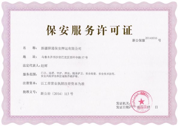 新疆驛通保安押運有限公司,注冊資本1000萬元人民幣,具有獨立法人資格,下設部門有:綜合管理辦公室、人力資源部、指揮中心、保衛部、財務部、業務部、押運部、督察隊、公司金庫。公司建立了符合市場和現代企業要求的經營運作模式和管理機制,有一套較科學的經營管理制度、守押勤務制度、守押作業規范化操作制度和標準。